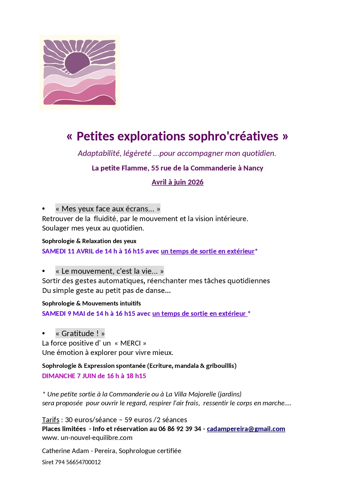 Profitez de mes ateliers et stages de sophrologie à Nancy pour vous ouvrir la voie.